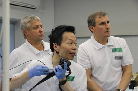Во время лайф-демонстрации эксперты выполнили уникальные эндоскопические диагностические процедуры и лечебные операции: двум пациентам по поводу доброкачественного и злокачественного стеноза желчных путей были выполнены ЭРХПГ, ЭПСТ инструментом Boston Scientific, стентирование самораскрывающимся нитиноловым стентом BS Wallflex, трем пациентам с доброкачественными предраковыми заболеваниями толстой кишки были выполнены резекции слизистой оболочки и диссекции в подслизистом слое с патологическими образованиями, выполнено 3 эндосонографии с выполнением тонкоигольной аспирационной биопсии иглами BS Expect и последующими комментариями врачей-цитологов, в одном случае проведено чрезкожное атеградное дренирование желчных путей по поводу механической желтухи и билиарной гипертензии с помощью стента BS Wallflex, впервые в Ярославской области выполнена эндоскопическая крикофарингеальная миотомия по поводу дивертикула Ценкера, также в одном случае выполнено стентирование пищевода частично покрытым нитиноловым самораскрывающимся стентом BS Wallflex.